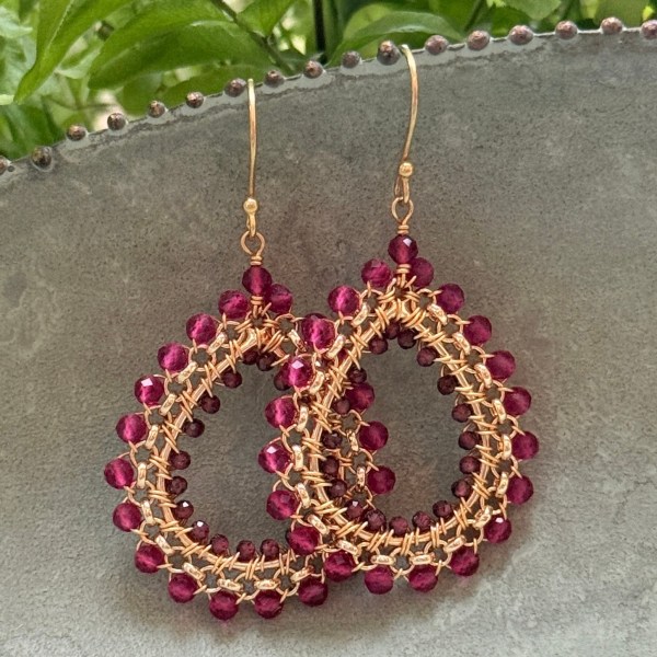 Pink Garnet Medium Rolo Teardrop Earrings