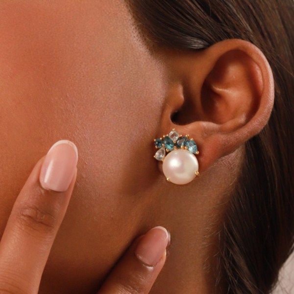 Vita Gold Bumble Bee & Cultured Freshwater Pearl Drop Earrings
