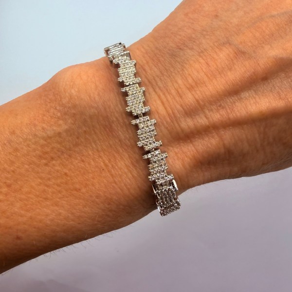 Zirconia Geometric Bar Link Bracelet – Available in Gold or Silver