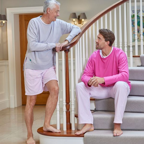 Organic Brushed Cotton Loungewear Trousers- Pants Pink and White