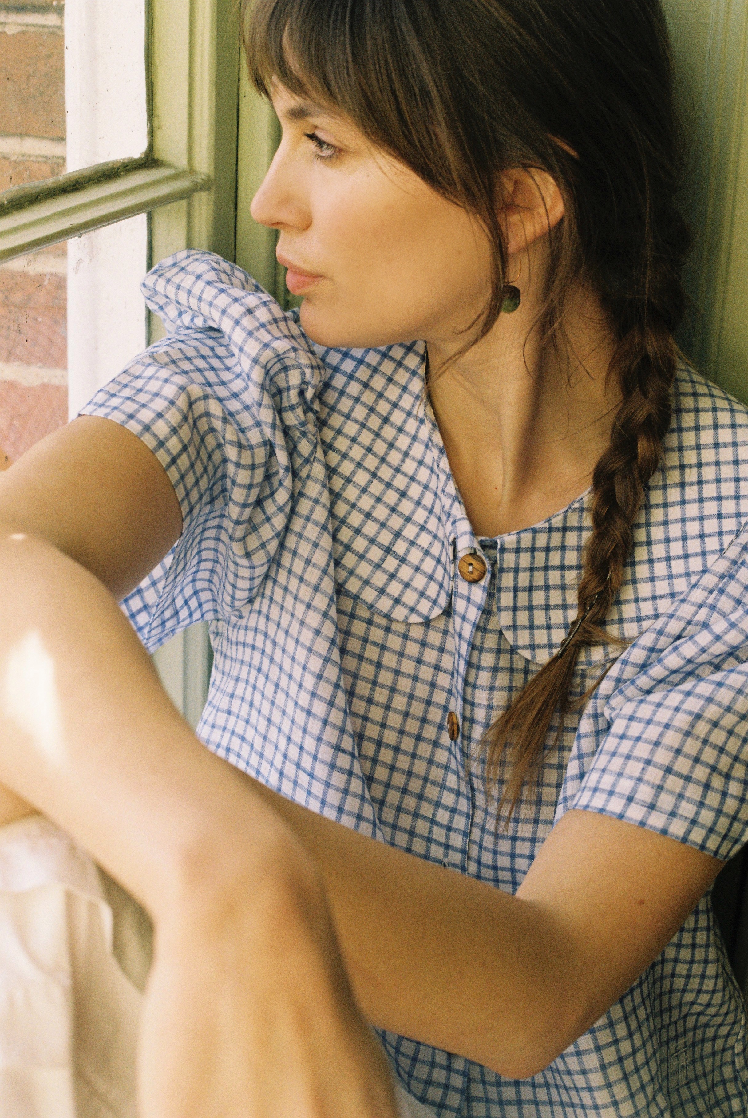 / Frances Linen Cropped Blouse – Royal Blue Gingham
