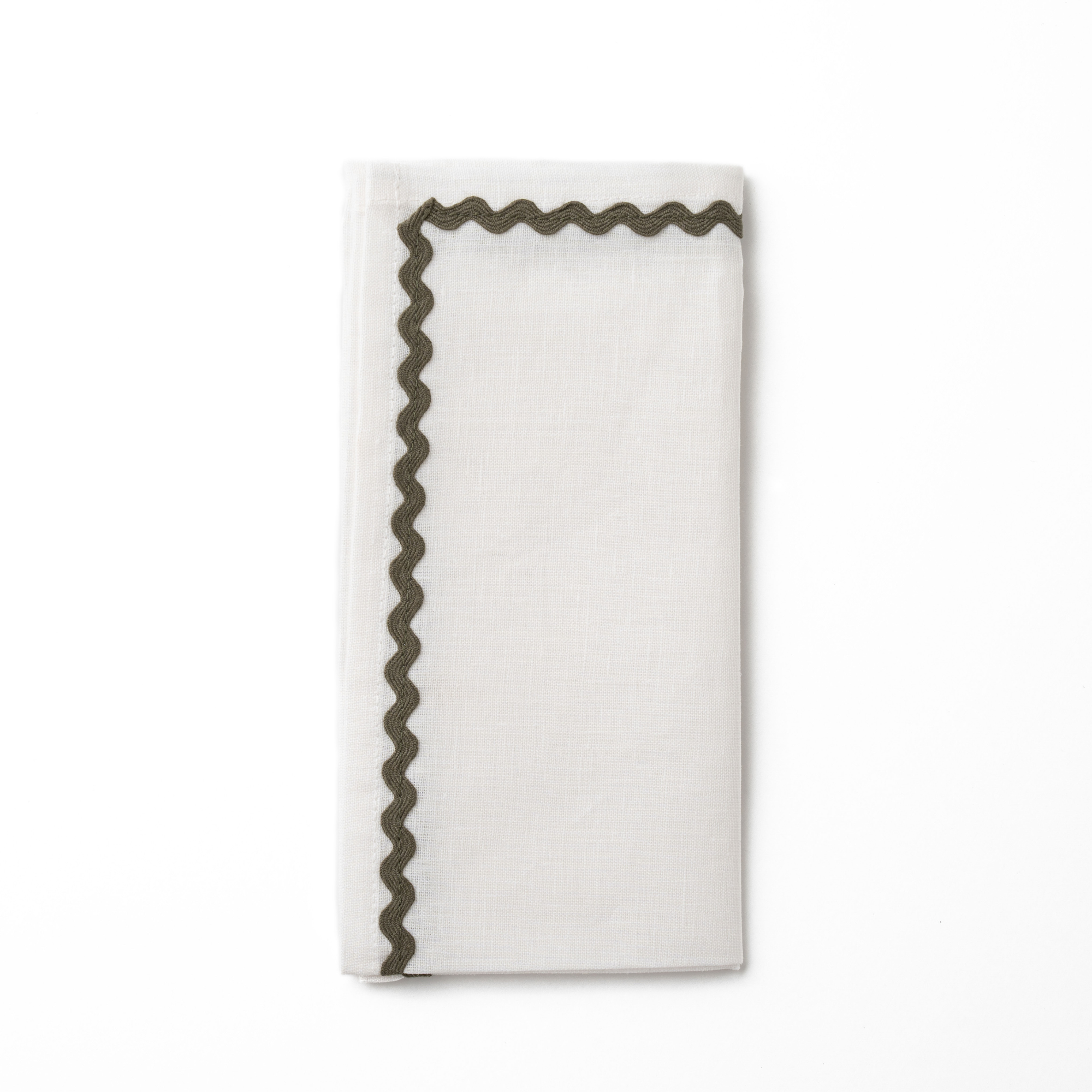 Linen Wave Napkins – Set of 4 – White with Olive Wave