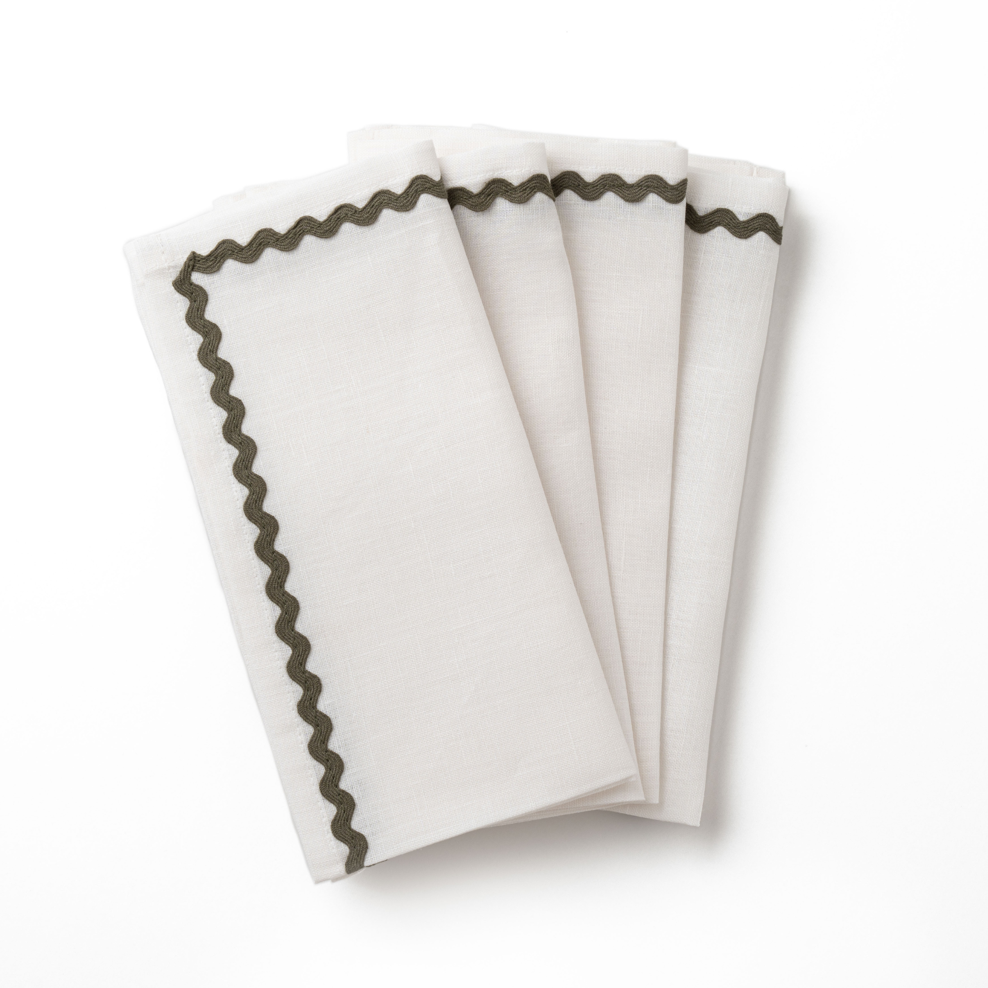 / Linen Wave Napkins – Set of 4 – White with Olive Wave